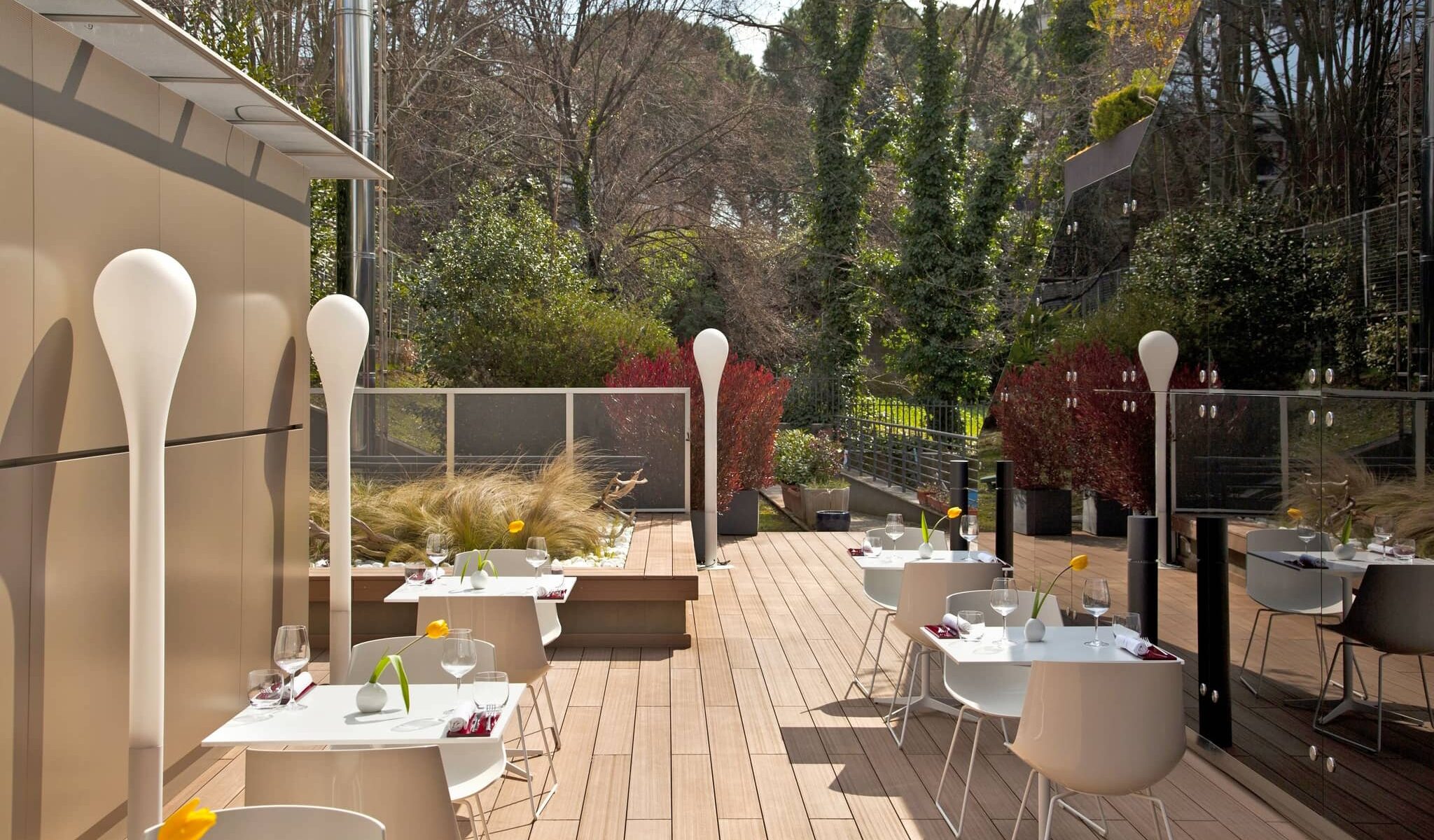 Immerso nella calma assoluta di giardini e spazi luminosi, avvolto da un’atmosfera magica e rilassante, l’Eno-Z è un vera e propria oasi per gli amanti del buon cibo e del comfort assoluto. Un posto dove creatività e innovazione si sposano per dare vita a un ambiente unico, sia dal punto di vista culinario che da quello del design architettonico.